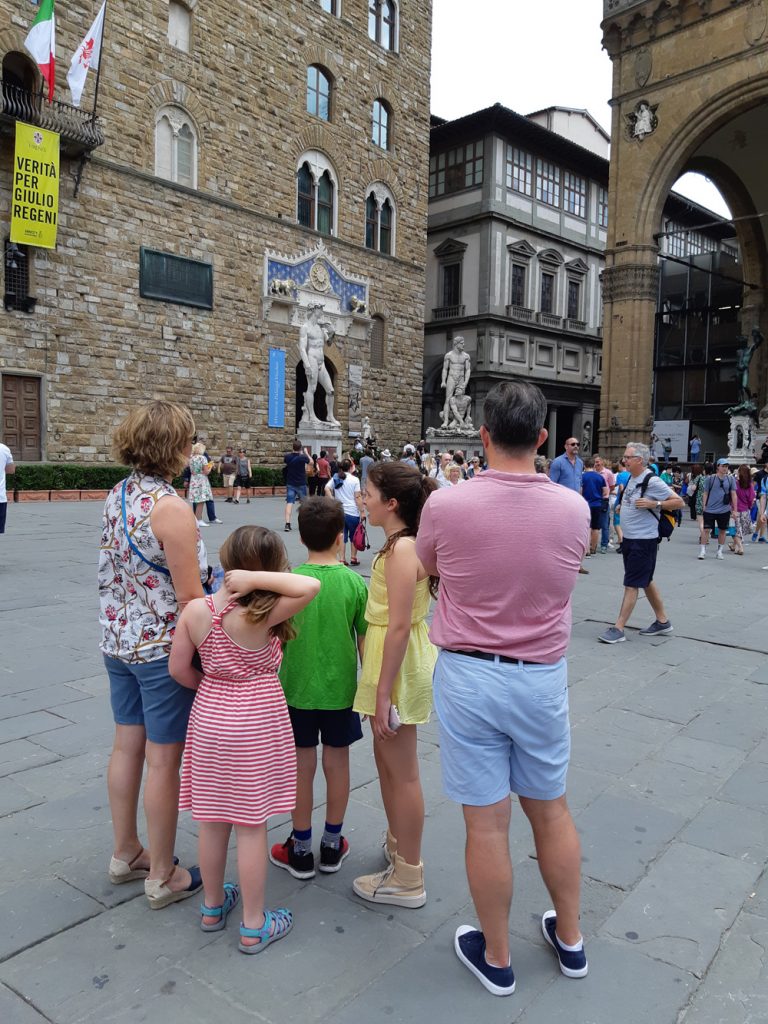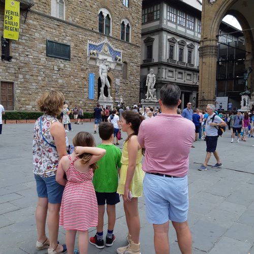 Si vienes a Florencia en FAMILIA, no te preocupes, he preparado un tour dedicado a tus NIÑOS, en manera clara y divertida podrán conocer juntos la historia de la ciudad, durante el recorrido descubrirán algunos de los fantásticos animales que habitan por las calles florentinas, como las águilas que viven en los palacios, los leones feroces, el jabalí mágico y otros más.